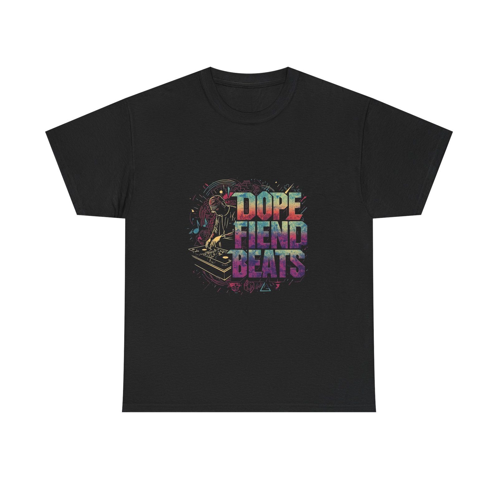 This tee carries the pulse of late-night sessions and sunlit studio mornings. Soft, sturdy cotton forms a relaxed canvas for the bold, multicolored “DOPE FIEND BEATS” print that looks like soundwaves spilled into color. Wear it to crate-digging runs, beat-making marathons, or low-key shows — it sits loose and comfortable while making a clear statement without shouting. The lightweight yet durable fabric feels familiar right away and holds up to frequent washes, while the ribbed collar and taped shoulders keep the shape through long hours of wear. Subtle distressed flecks in the Natural color add personality; the printed sleeve and inner neck details are rendered with crisp DTF and DTG techniques for lasting clarity.