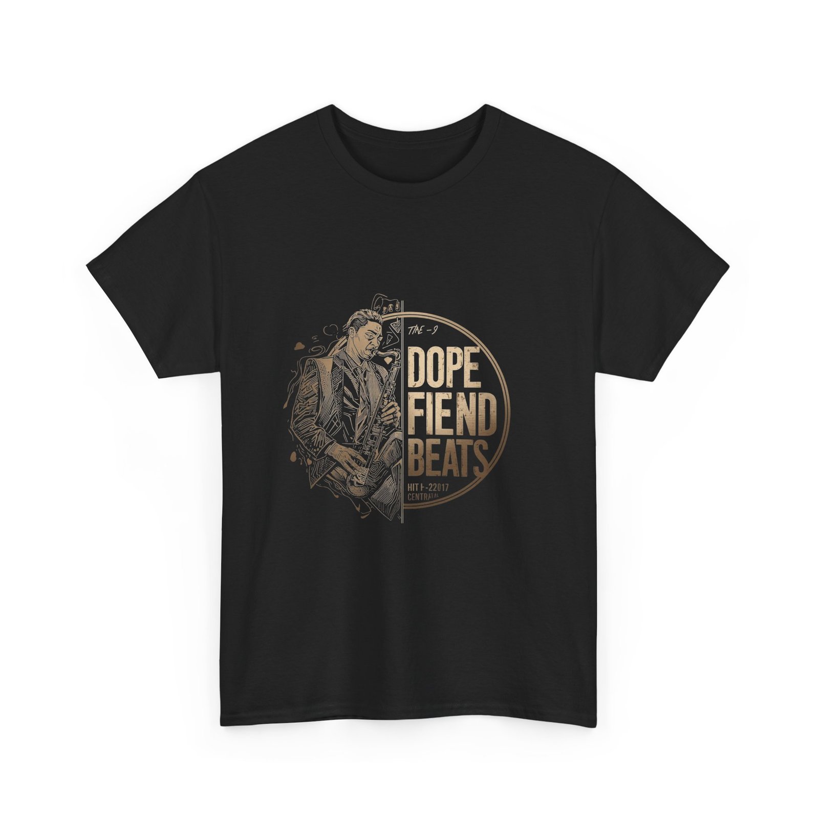 A soft, relaxed tee that feels like the soundtrack to your weekend studio session. The design blends a gritty, hand-sketched figure with bold, retro typography — ‘Dope Fiend Beats’ — sitting inside a faded circle that looks like an old record label. It’s quiet vintage energy: worn-in, creative, and honest. Wear it when you’re laying down tracks, digging through crates, or just drifting between coffee shops and late-night jams. The slightly oversized classic cut lets you move freely while the smooth, print-friendly fabric keeps the artwork crisp and detailed wash after wash.